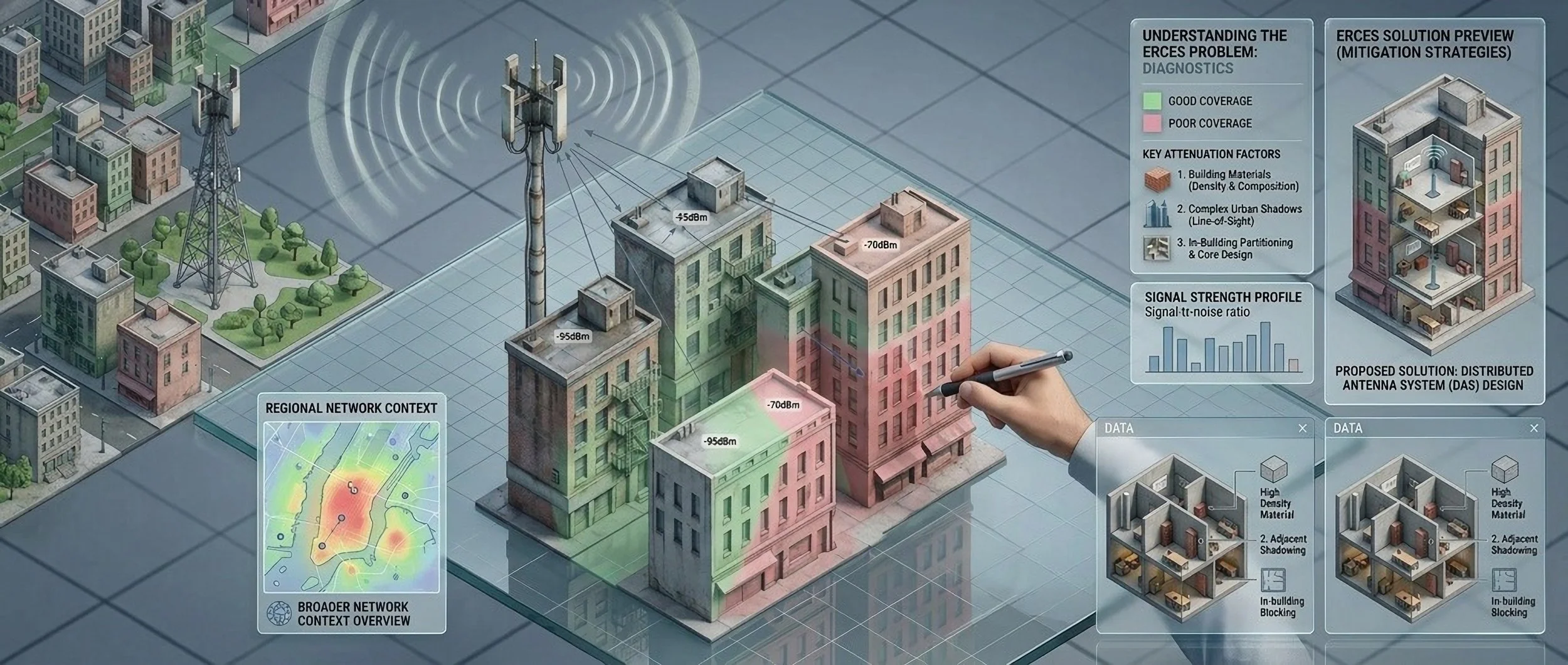 Implementing a Distributed Antenna System (DAS) starts with understanding your building’s coverage needs. Begin with a site survey to identify signal gaps, define whether you need public safety, cellular, or both types of coverage, and engage experienced engineers to design a tailored solution. After professional installation, thorough testing ensures reliable performance, and ongoing maintenance keeps your system compliant and fully operational. Get started today.